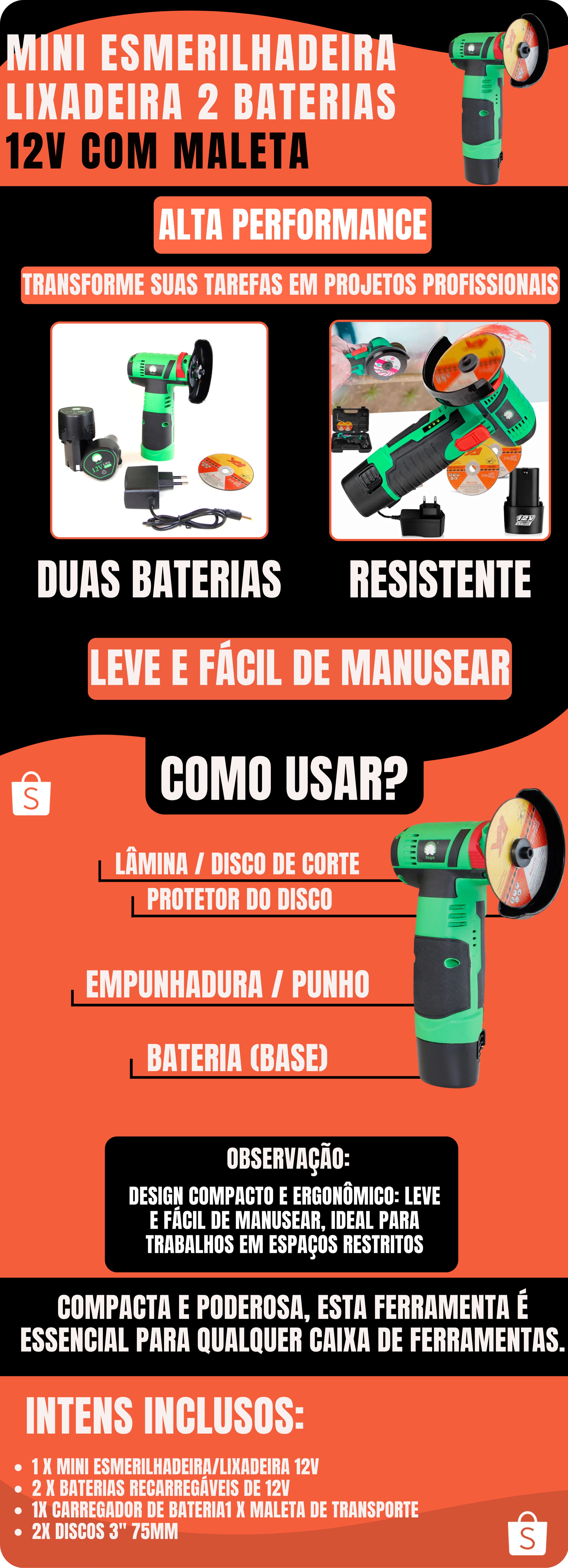 Mini Esmerilhadeira Lixadeira Elétrica Sem Fio Bivolt 110v/220v 2 Baterias 12V Com Maleta
